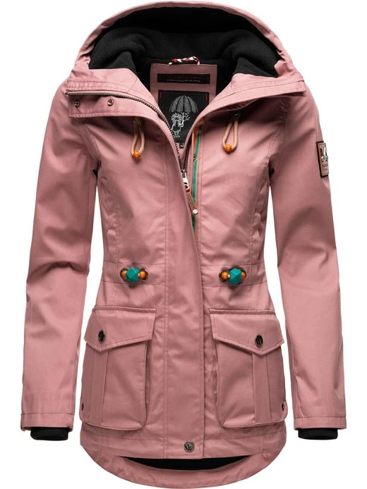 Wasserabweisende Damen Übergangsjacke von Marikoo mit Kapuze und modischen Details – ideal für Übergang (Frühling und Herbst).